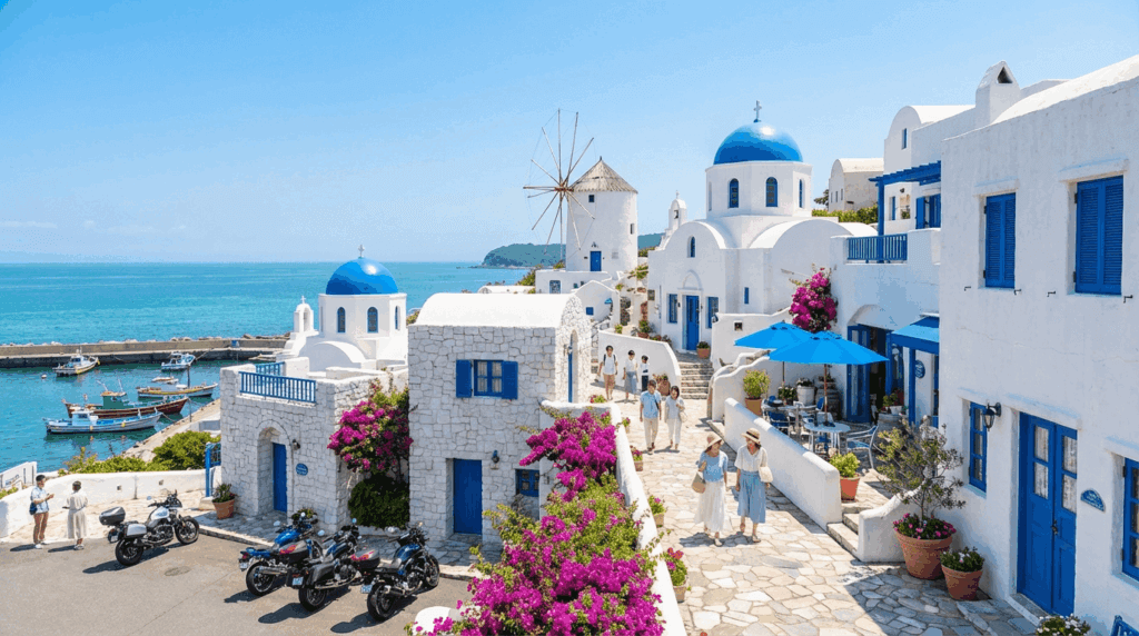 地中海の街並みを再現したリゾート施設で、白い建物と青い海のコントラストが美しいフォトジェニックなスポットです。宿泊施設もありますが、日帰りでの散策も可能です。