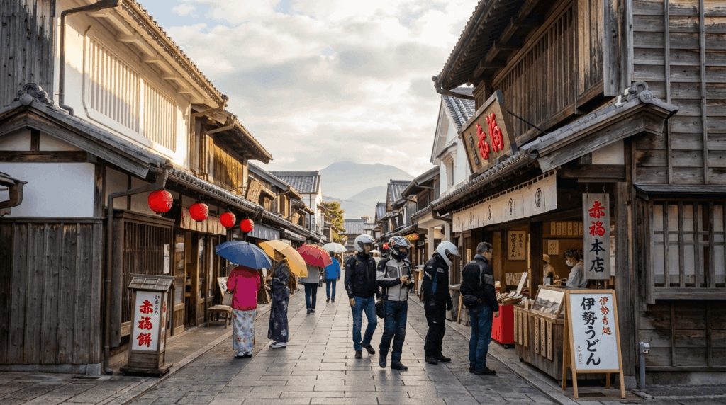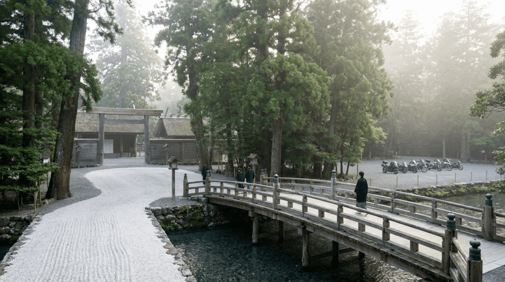 伊勢ICを降りてすぐの伊勢神宮エリアは、日本人なら一度は訪れたい聖地です。早朝参拝で神聖な空気を感じてからツーリングをスタートすると、心身ともにリフレッシュされます。